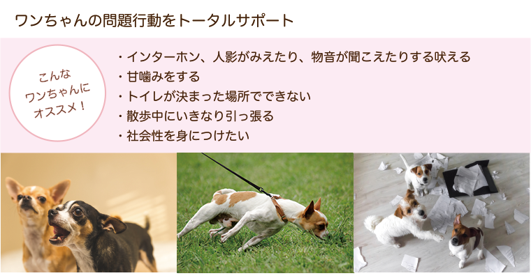 室内やいつものお散歩コースでの問題点など、普段の生活における問題行動に対して、