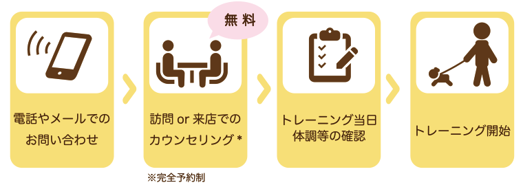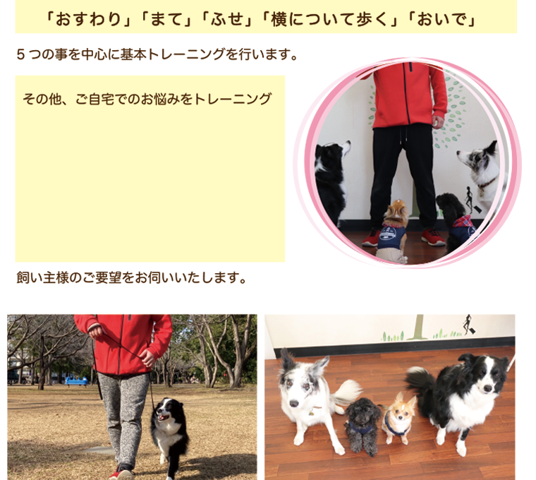 ご自宅といういつもと同じ環境で、飼い主様とより実践的にお勉強していきます。